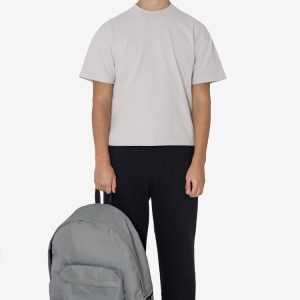 This essential backpack is made of a PVC-backed tightly woven nylon for extreme durability. This textile is water resistant and easy to clean and maintain. This backpack has a deep, boxy shape with a large front zippered pouch and padded adjustable straps. Perfect for day to day use on campus or for traveling. Made by