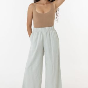 This relaxed cotton twill pant features a breezy wide leg fit and a 2 inch soft elastic waist for everyday comfort. This style can be worn for an everyday vacation look with our cotton spandex bodysuit styles or dressed up with a sweater or blouse. Comes with two side pockets. Made in Los Angeles, Calif….