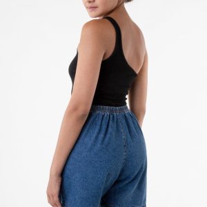 This boyish, mid-length short is made of 10 oz. denim that is lightweight for summer. Pair these shorts with our Tank Thong Bodysuit and some sneakers. More comfortable than a classic denim short with same versatility. This style features a half inch elastic waistband and 2 hidden side pockets. Made in the USA by worke