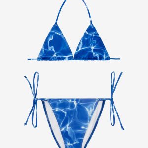 An iconic bikini top with spaghetti strings that tie behind the neck and back for an adjustable fit. This style has been updated with longer, narrow cups for a more 90s inspired look. Try scrunching the cups for a more revealing look or if you prefer a more traditional bikini, the cups are still large…