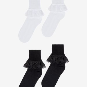 This cute, frilly take on the bobby sock adds a youthful feel to any outfit. Our girly lace sock is lightweight and breathable with a finely knit, ribbed cuff and finished with a double layer ruffled trim. These socks are garment dyed to match our bodysuits, sweaters and more. Also available in a 5-Pack. •…