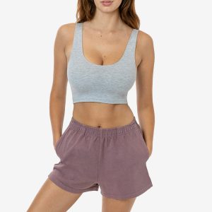 A feminine take on our Unisex Gym short. Perfect Short Shorts for the gym or your Sunday morning at home. These shorts are part of our garment dye line, which is always custom dyed, shrink-free and sewn with 100% USA-grown cotton. Made in Los Angeles, Calif. Our experienced sewers earn up to $25 an hour…