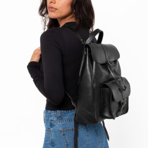 The Unisex Leather Knapsack is a rugged analogue inspired bag made of a stiffer, medium bodied cowhide. The shoulder straps are adjustable and removable with brass clips. A leather drawstring keeps the top of the bag securely closed, beneath the top flap. Brass buckles can be used to secure the front flaps, including o