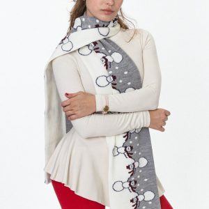 Celebrate the festive winter season with the Snowman Scarf. This unisex scarf features a chain of snowmen, each wearing its own billowing scarf. • Approximately 77" Long• Made in Los Angeles, Calif.• Unisex• 100% Acrylic
