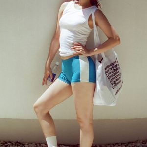 These low-rise short shorts are made of our matte nylon tricot and feature a contrasting sporty stripe at each side. Pair with tanks and crop tops for your workouts and daily walks. These shorts have a seamless fit from the front and are unlined (not intended for use in water). Made in Los Angeles, Calif….