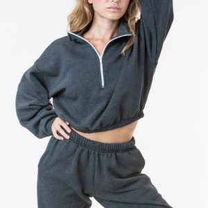 The Flex Fleece Half Zip Cropped Pullover. This pullover features elastic hems around the middle of the waist and at the wrists and this style can be worn zipped up or down. Casual and functional with a generous fit to the body and arms. Perfect for layering over our crop tops and bike shorts. This…
