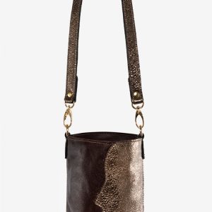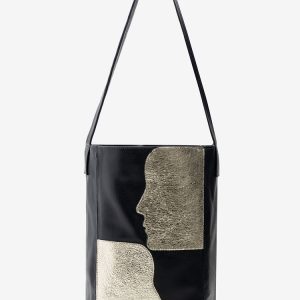 Add a burst of unexpected color with a classic bucket tote as a shoulder bag. The removable shoulder strap can be used on other bags and the interior is lined with cotton twill. The cowhide exterior features a mysterious silhouette sewn on the front panel.This artisanal product is made of genuine leather. All scars are