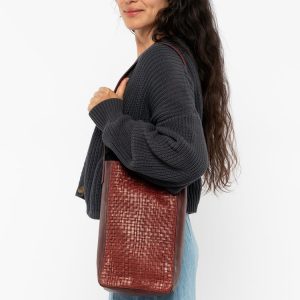 The Woven Slim Tote features a classic woven embossed pattern and easily fits your tablet, water bottle, and other essentials. This artisanal product is made of genuine leather. All scars are characteristics of the skin and not imperfections. We hope you enjoy this unique handmade object. • Lined • Made in Los Angeles,