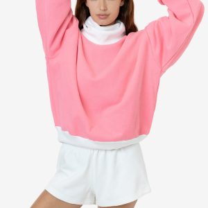 This heavy fleece version of our oversized contrast turtleneck sweatshirt is made using recycled, leftover rolls of various heavyweight cotton fleeces. The generous blouson fit will keep you comfy and cozy all winter long while still looking chic. The contrast rib turtleneck and cuffs give this garment an elevated look