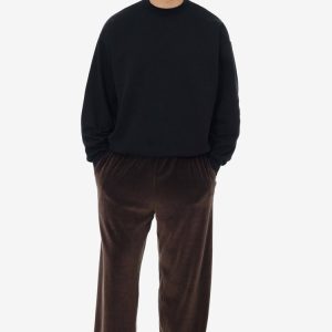 Our velour lounge pants have a roomy, straight-leg fit and can be worn high or low waisted depending on your mood. These pants have 2 side pockets and an adjustable drawcord inside the elastic waistband. We recommend sizing up one size if you prefer a more generous fit. Our velour collection is made of a…
