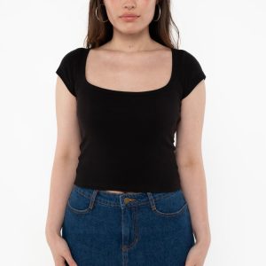 This baby rib crop top features cap sleeves, a scoop neckline, and a true button front placket that can be worn partially or completely unbuttoned. Our experienced sewers earn up to $25 an hour and no less than $17.87; additionally workers have healthcare benefits for less than $15 per week, a 401k plan, paid sick…