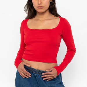 This original classic girl tee was designed by Dov Charney in the early 90s and remains an essential layering piece 30 years later. This top is made of our 100% cotton 1×1 baby rib and features a crew neckline with a binding finish and long sleeves. This top has a mid to full length fit…