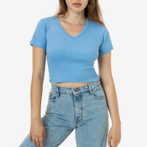 4356 – Baby Rib Short Sleeve V-Neck Crop Tee