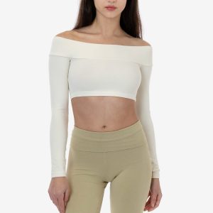 83074GD – Cotton Spandex Long Sleeve Off Shoulder Crop Top