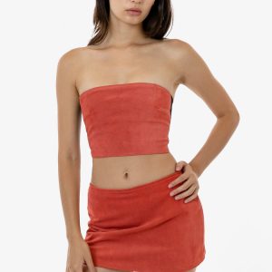 This 2 tone suede tube top is the perfect pairing with our RLH739 Suede Micro Mini Skort. Our calf suede is a velvety leather with a unique finishing process that results in a velvety nap, known for its softness and texture. Calf suede is significantly thicker than lambskin and more durable for a long-lasting result…