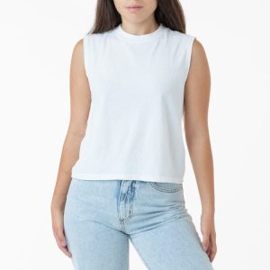 Our Women's Muscle Tank is made of a lightweight and airy 28/1 open end yarn like our 2802GD Boyfriend Tee. This style has a generous fit with roomy armholes. The high-crew neckline of this top makes it great for layering and the mid-length can be tucked in or worn out. Made in Los Angeles, Calif….