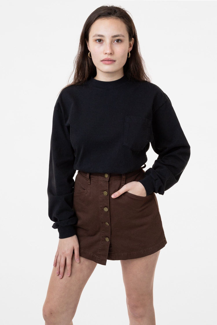 This unisex work shirt is made of our super heavy 8.5 oz., 12 singles jersey which features more structure than a more lightweight jersey. This workwear-inspired shirt features extra room in the sleeves and body width so it can be layered with your favorite undershirts, a round mock neck collar, and a pocket to keep an