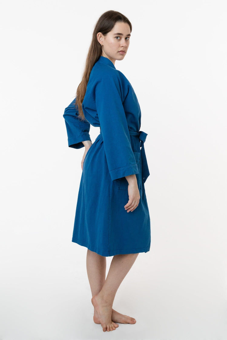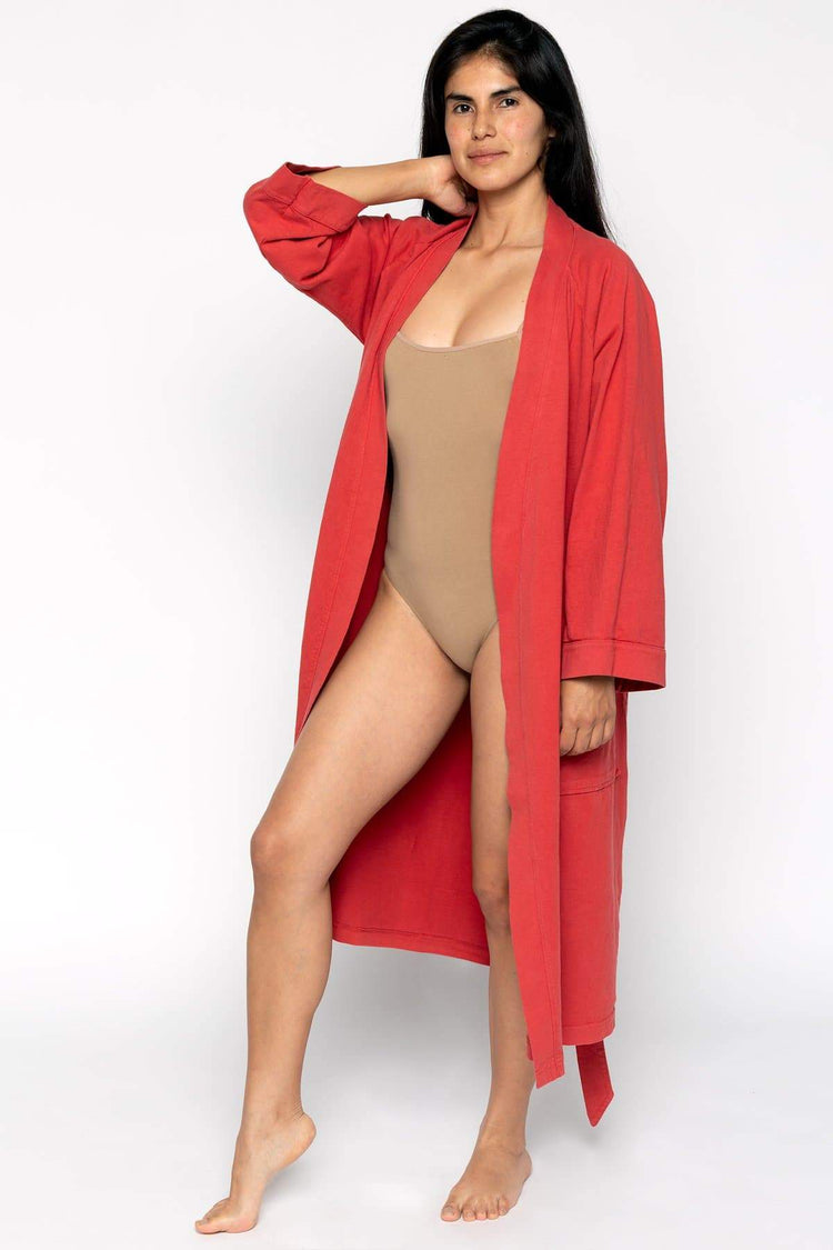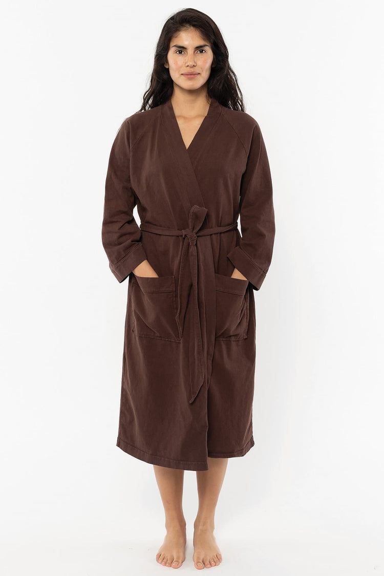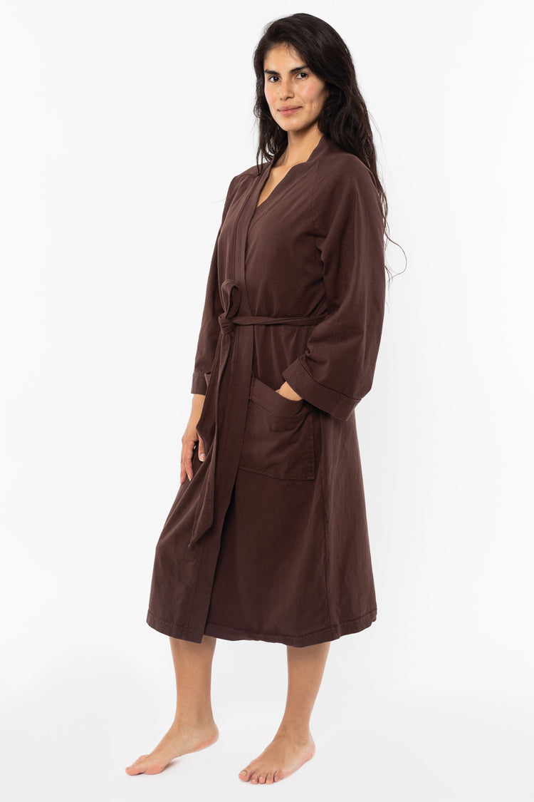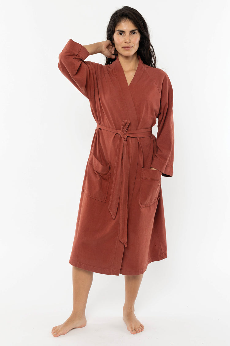 Our House Robe is made of 100% cotton and can be worn in and out of the house. Made of heavy jersey, it'll be your new staple after a bath, as a poolside coverup, and for a casually chic look at home or while you're out running errands. Features 3/4 raglan sleeves, 2 front pockets, and a waistband that's attached to th