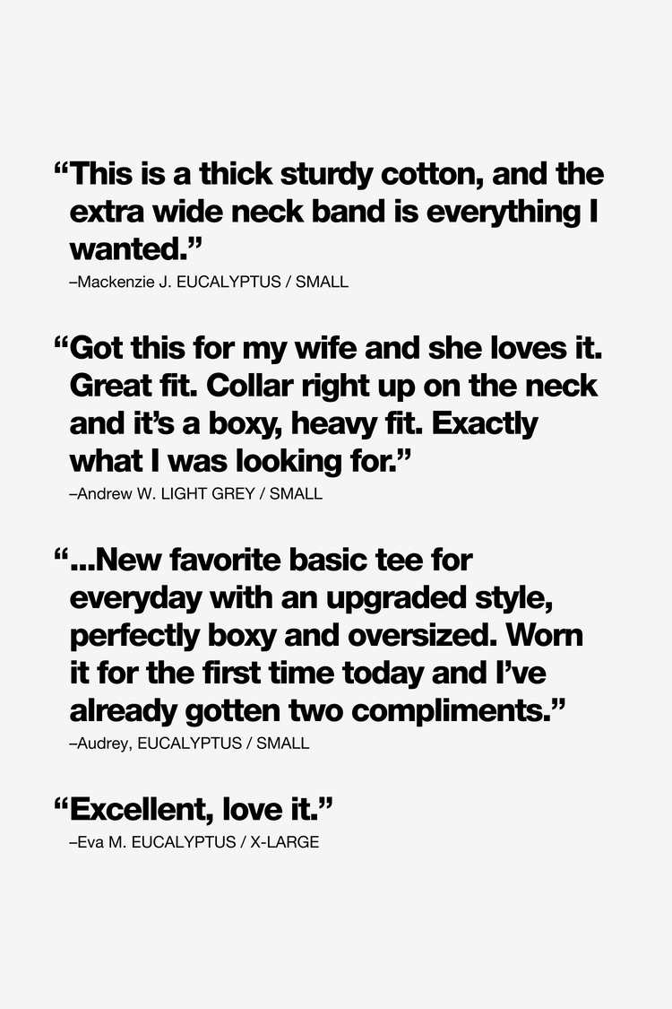 A heavier version of original garment dye tee with a mock neck for a more modern shape. Same loose, boxy fit with a higher neckline and beefier texture. This tee is part of our garment dye line, which is always custom dyed, shrink-free and sewn with 100% USA-grown cotton. Made in Los Angeles, Calif. Our experienced sew