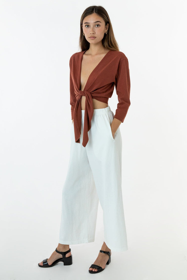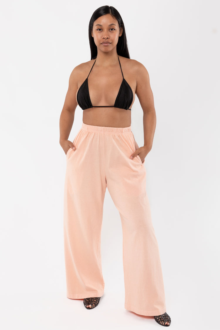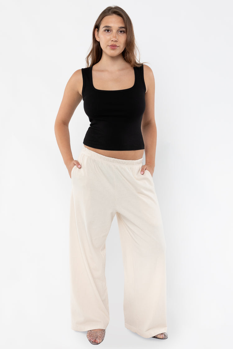 This relaxed lounge pant is made of our 7.5 oz 14 singles jersey and features a generously chic fit and comfortable elastic waistband. Pair these pants with a baby tee for indoor lounging and dress them up with a fitted turtleneck or your favorite blouse. Also features 2 deep side pockets. Made of 100% cotton, garment