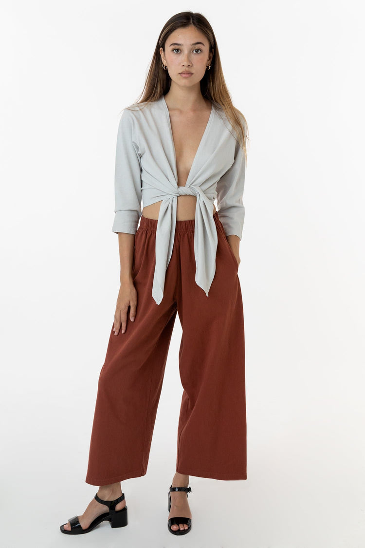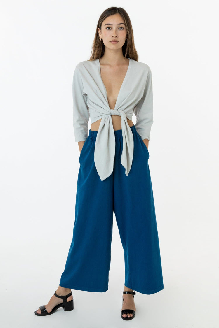 This relaxed lounge pant is made of our 7.5 oz 14 singles jersey and features a generously chic fit and comfortable elastic waistband. Pair these pants with a baby tee for indoor lounging and dress them up with a fitted turtleneck or your favorite blouse. Also features 2 deep side pockets. Made of 100% cotton, garment