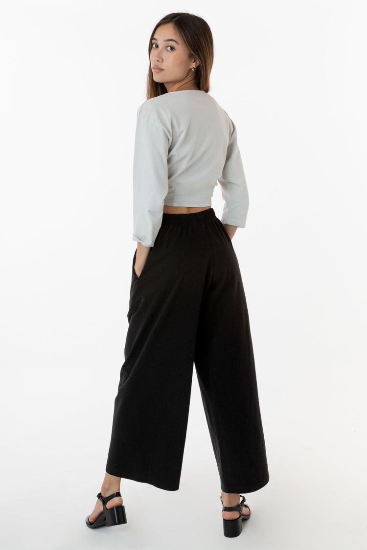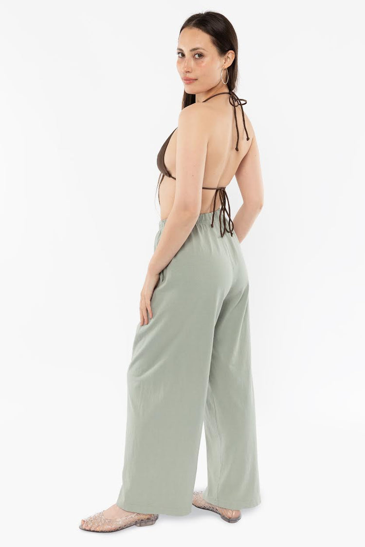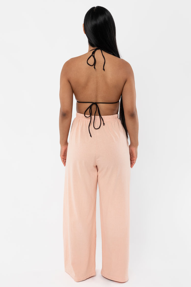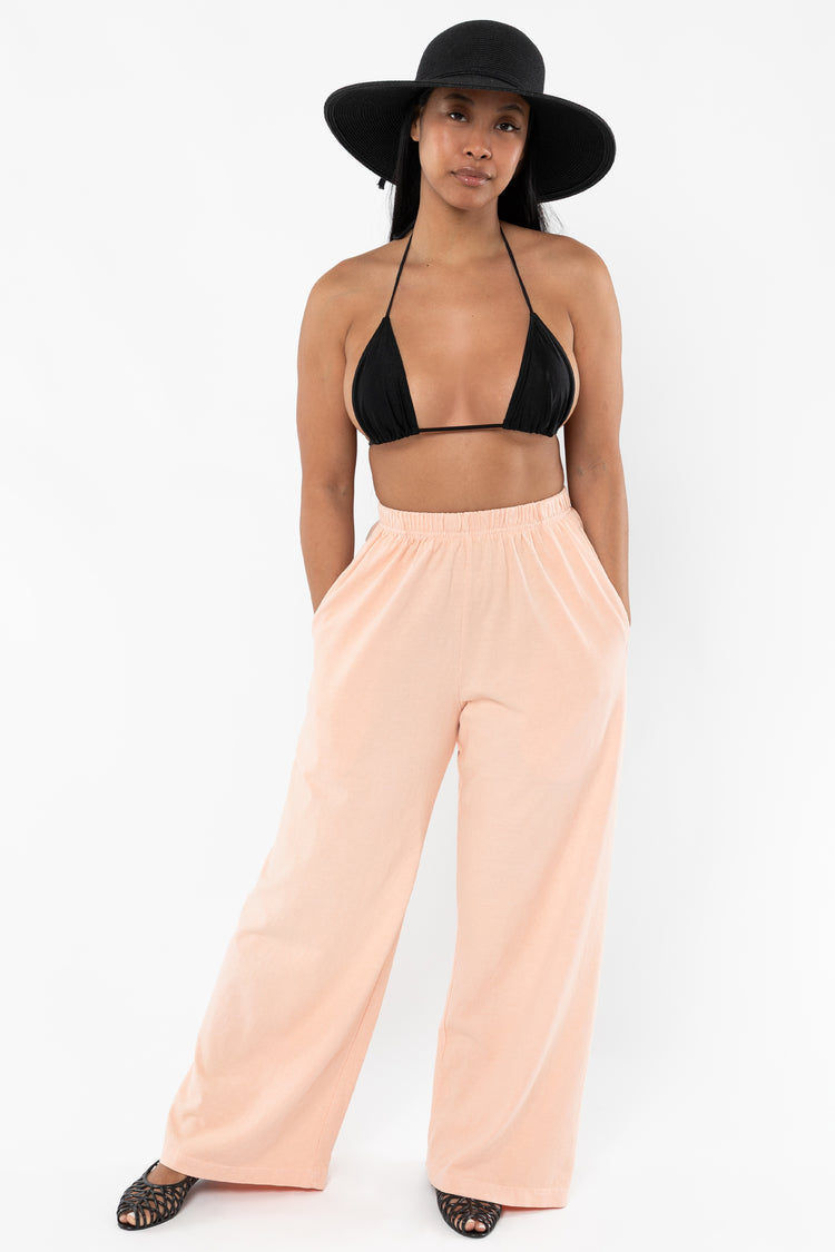 This relaxed lounge pant is made of our 7.5 oz 14 singles jersey and features a generously chic fit and comfortable elastic waistband. Pair these pants with a baby tee for indoor lounging and dress them up with a fitted turtleneck or your favorite blouse. Also features 2 deep side pockets. Made of 100% cotton, garment