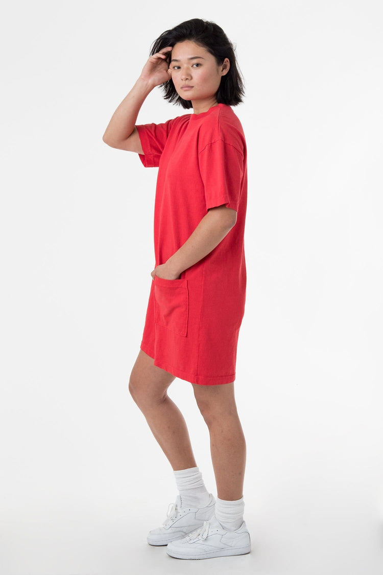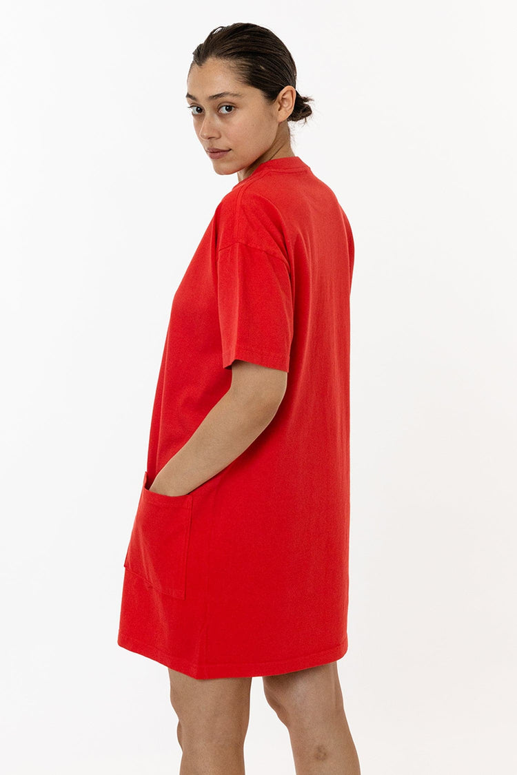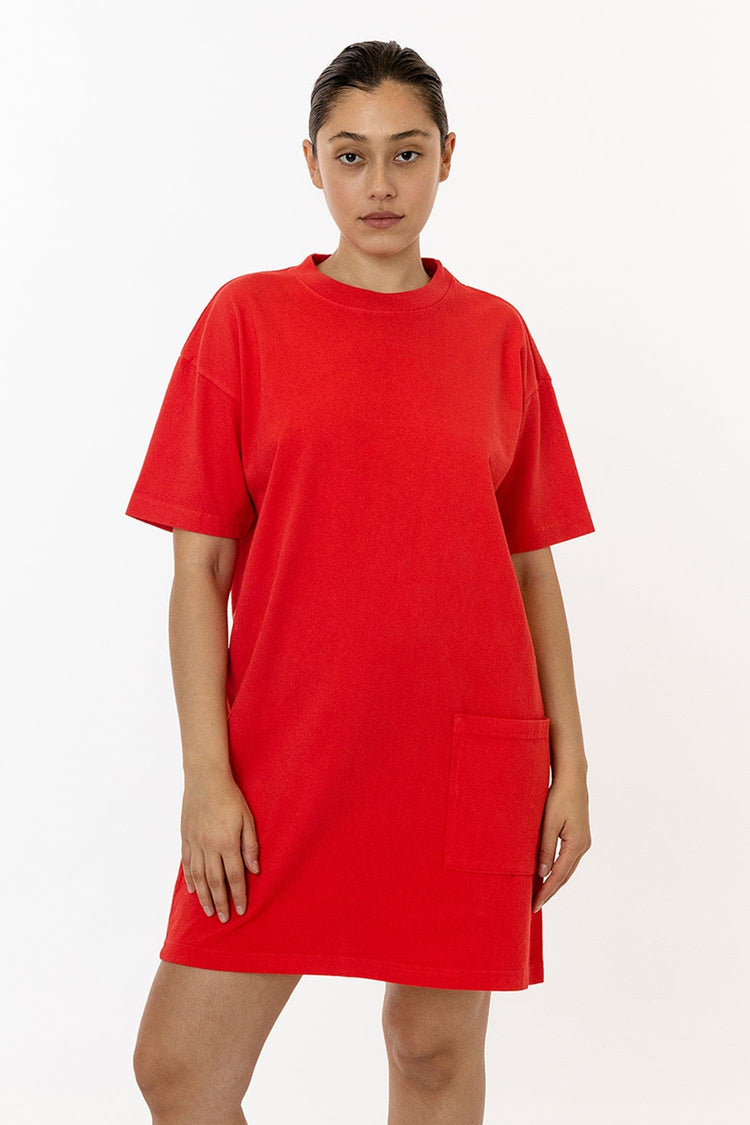 The Oversized T-shirt was designed with comfort in mind. We've added a pocket, which makes this dress different than the average t-shirt dress. Hits above the knee making this dress the perfect dress to run errands in. Constructed from rigid 7.5 oz 100% U.S Grown Cotton, custom dyed and shrink-free. Made in Los Angeles
