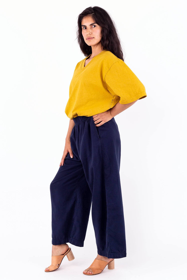 Constructed out of 14/1 cotton jersey, the Boxy V Neck T-Shirt features an alternative silhouette for women in comparison to our crewneck T-shirts, with a neckline that emphasizes facial features and slightly structured sleeves for strong shoulders. The fabric has a heavier feel than the 1801GD as it is knit using a th