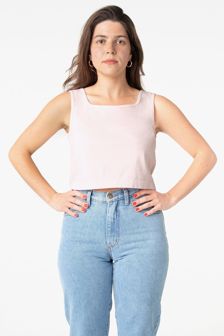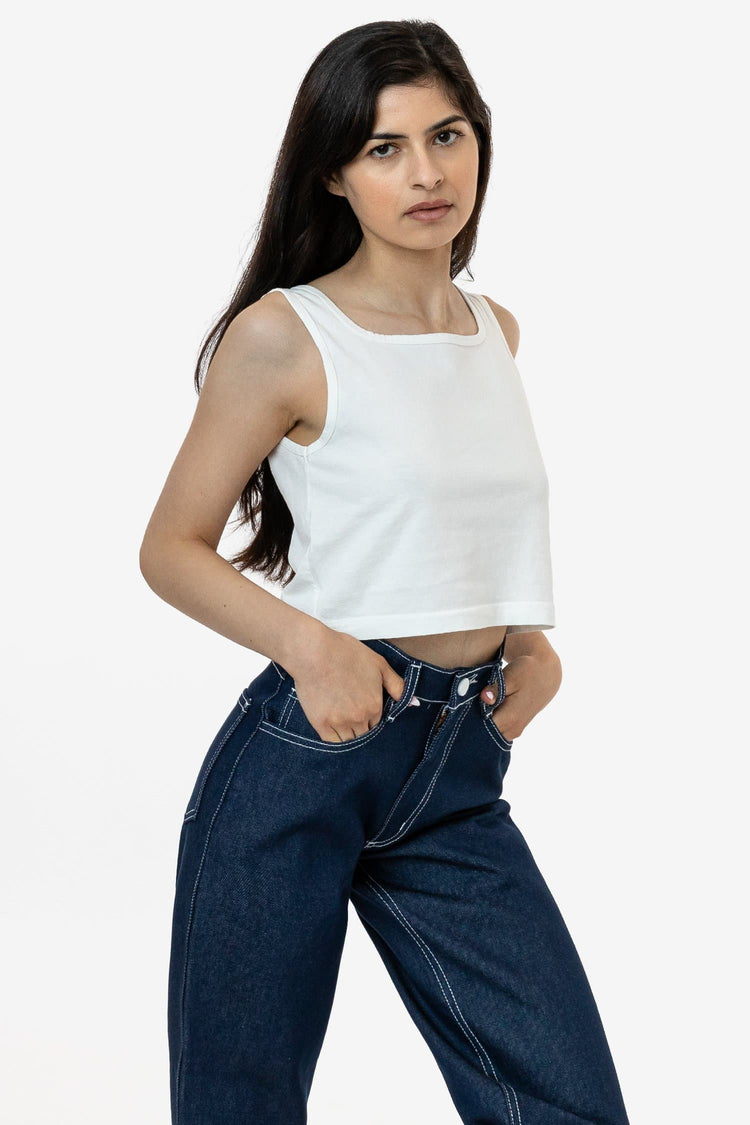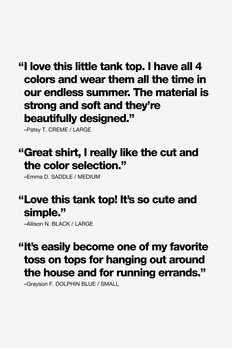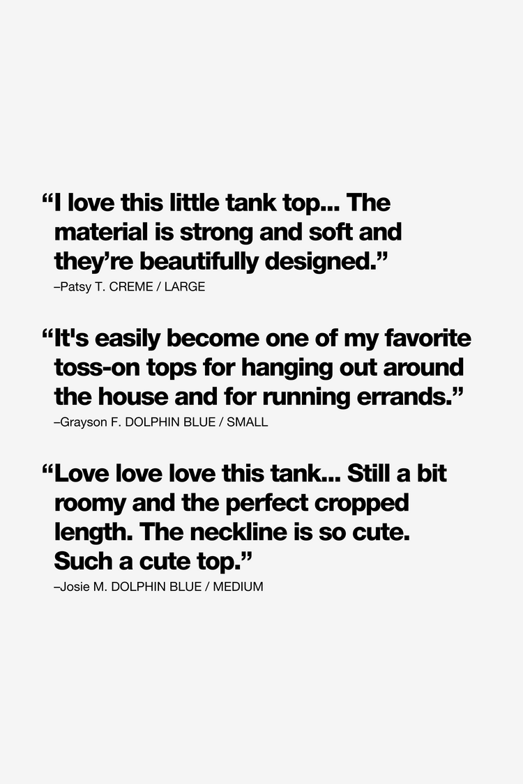 The Crop Tank is the perfect combination of a sophisticated yet playful silhouette. A squared neckline adds sophistication , while a fitted and cropped length adds to the playfulness of this garment. Shorter and more fitted than most of our styles, we recommend sizing up for a breezier fit. Only Black, Off-White, and A