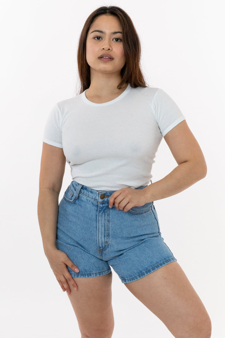 This original classic girl tee was designed by Dov Charney in the early 90s and remains an essential summer tee 30 years later. This top is made of our 100% cotton 1×1 baby rib and features a crew neckline and short sleeves with a binding finish and the perfect full-length fit that can be worn tucked or untucked and su