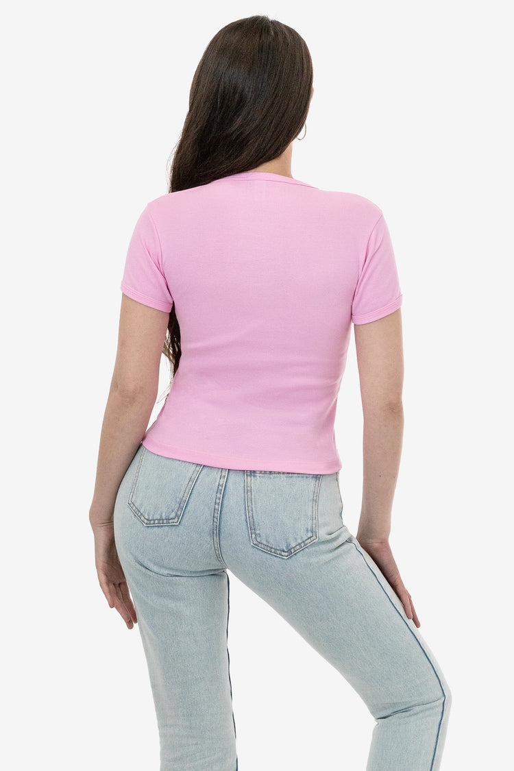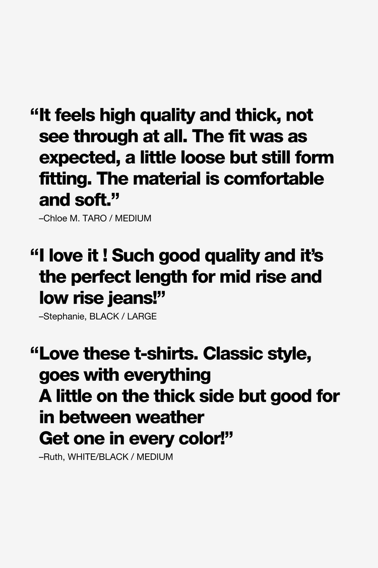This original classic girl tee was designed by Dov Charney in the early 90s and remains an essential summer tee 30 years later. This top is made of our 100% cotton 1×1 baby rib and features a crew neckline and short sleeves with a binding finish and the perfect full-length fit that can be worn tucked or untucked and su