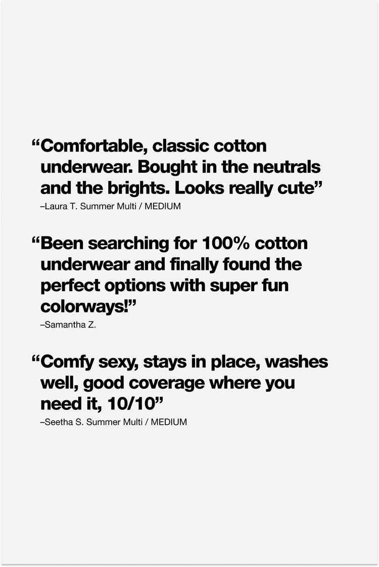 The perfect thong for everyday wear made of 30 singles combed cotton rib. This textile is breathable, lightweight, and soft. Our Baby Rib Thong has just the right amount of coverage for minimal panty lines and keeping you comfortable throughout the day. Made in South Central, Los Angeles by workers earning fair wages.
