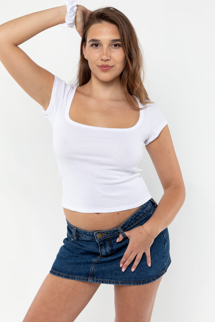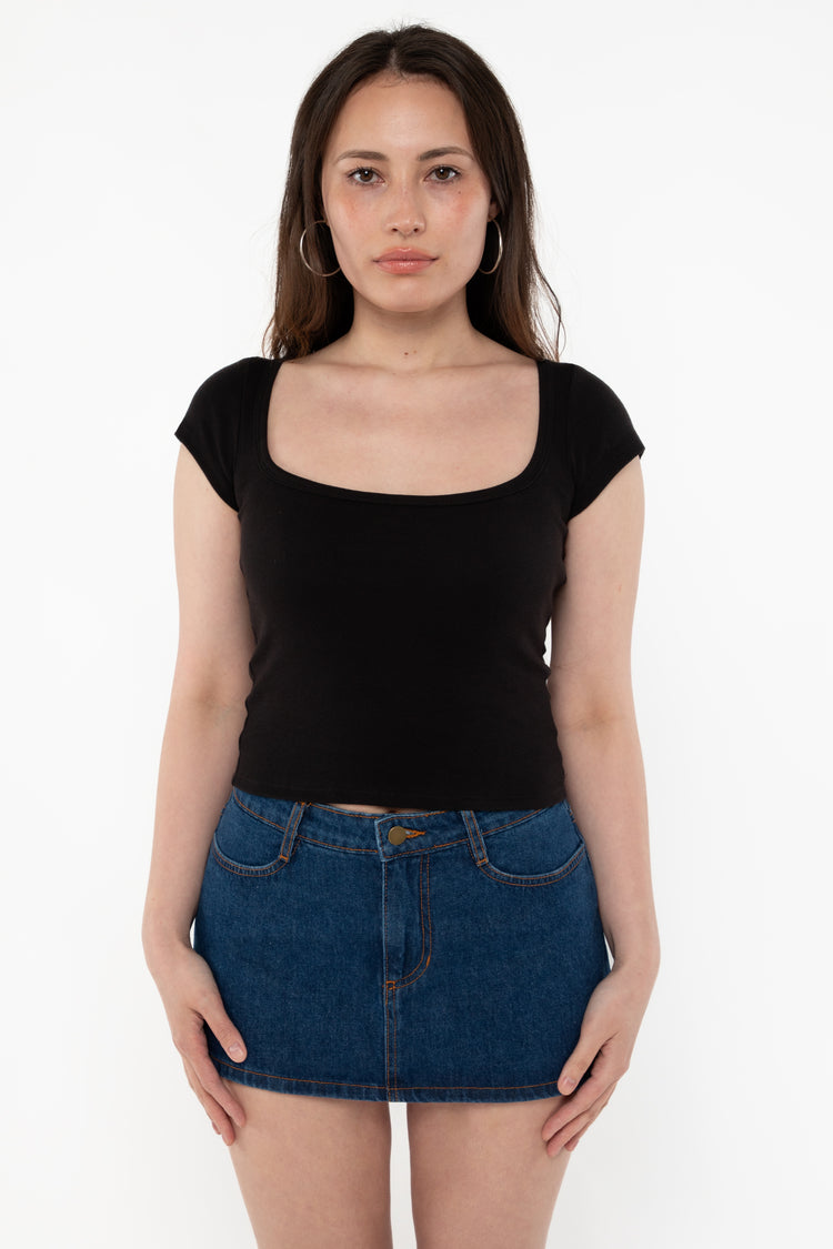 43023 – Baby Rib Square Neck Cap Sleeve Tee