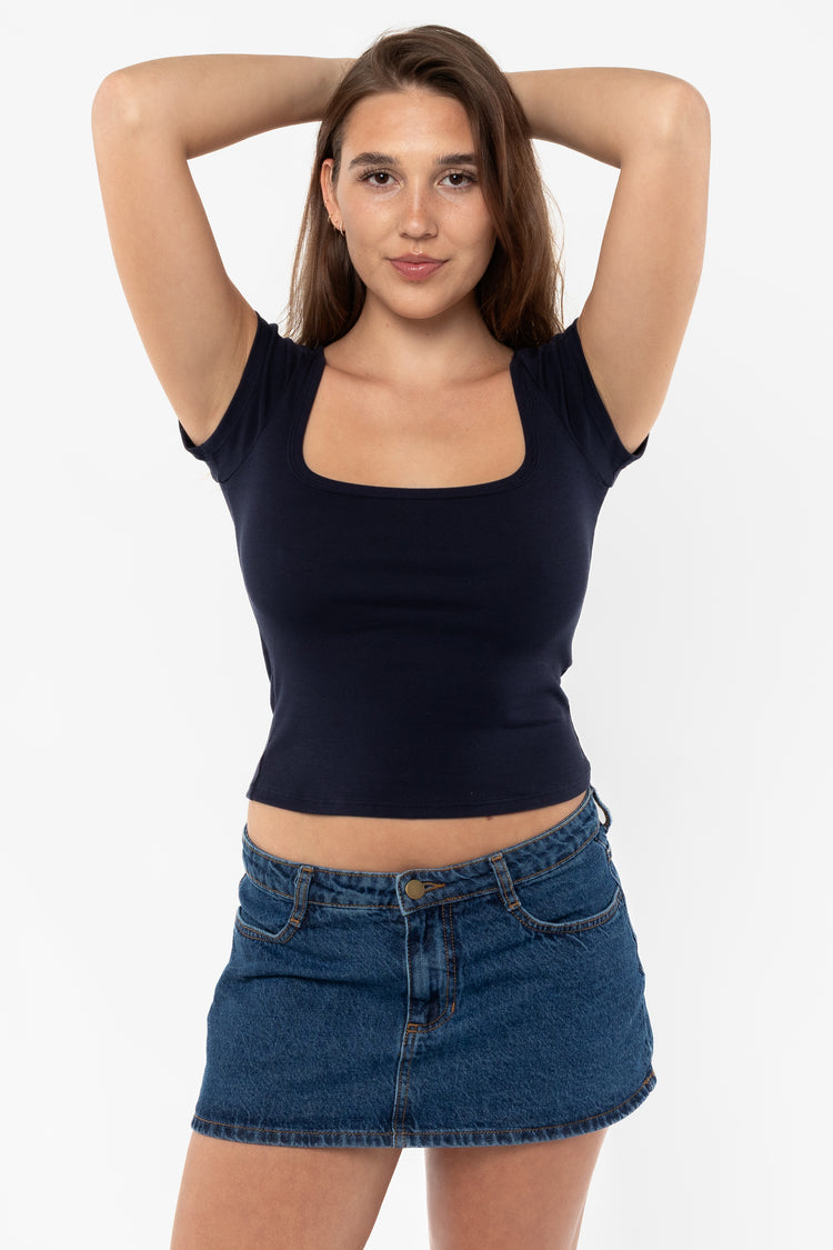 43023 – Baby Rib Square Neck Cap Sleeve Tee