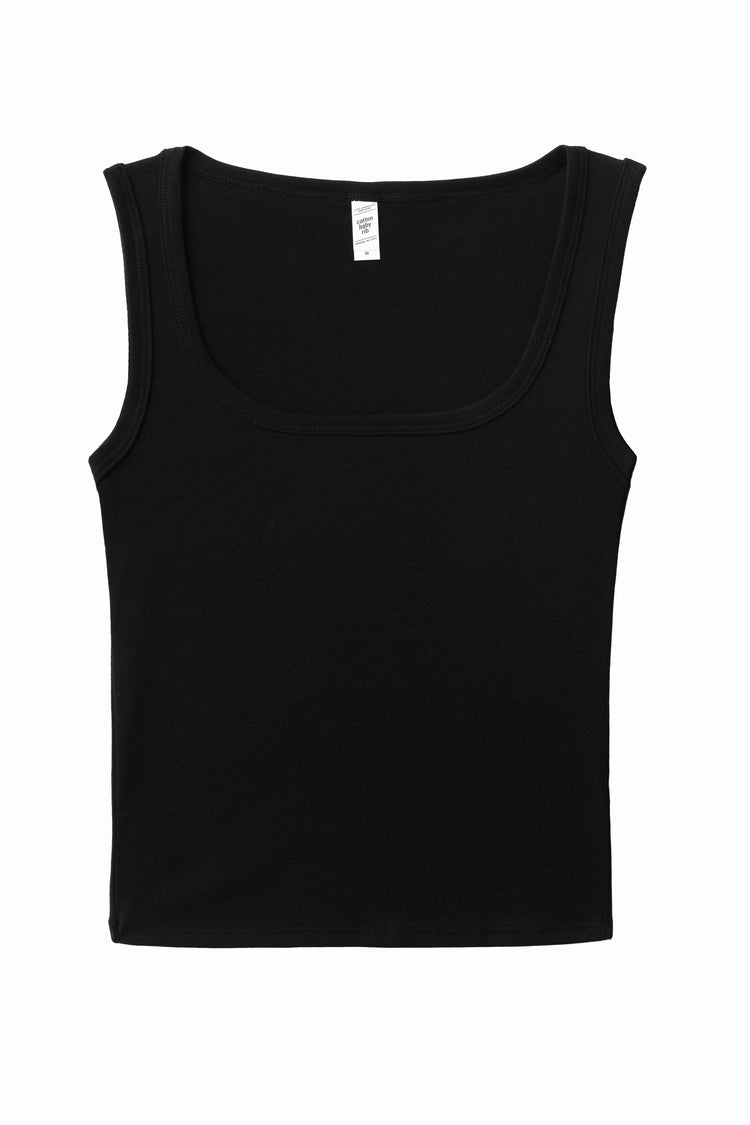 This tank top is made of our 100% cotton 1×1 baby rib and features a square neckline with a binding finish. The breathability of the cotton fabric allows for comfortable wear year around. Our baby rib is made of soft 30 singles yarn and stretches up to 2 times its original size. This 100% cotton style shrinks up to 7%
