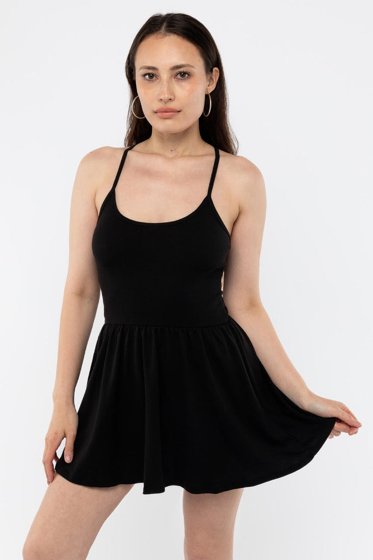 We dug into our archives to unearth a baby rib dress from the 2000s. The Baby Rib Cross Back Summer Mini Dress now comes with a higher hemline. Pair it with our jellies to complete your summer look. Our baby rib is made of soft 30 singles yarn and stretches up to 2 times its original size. This 100% cotton style shrink