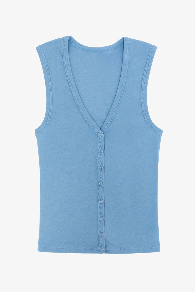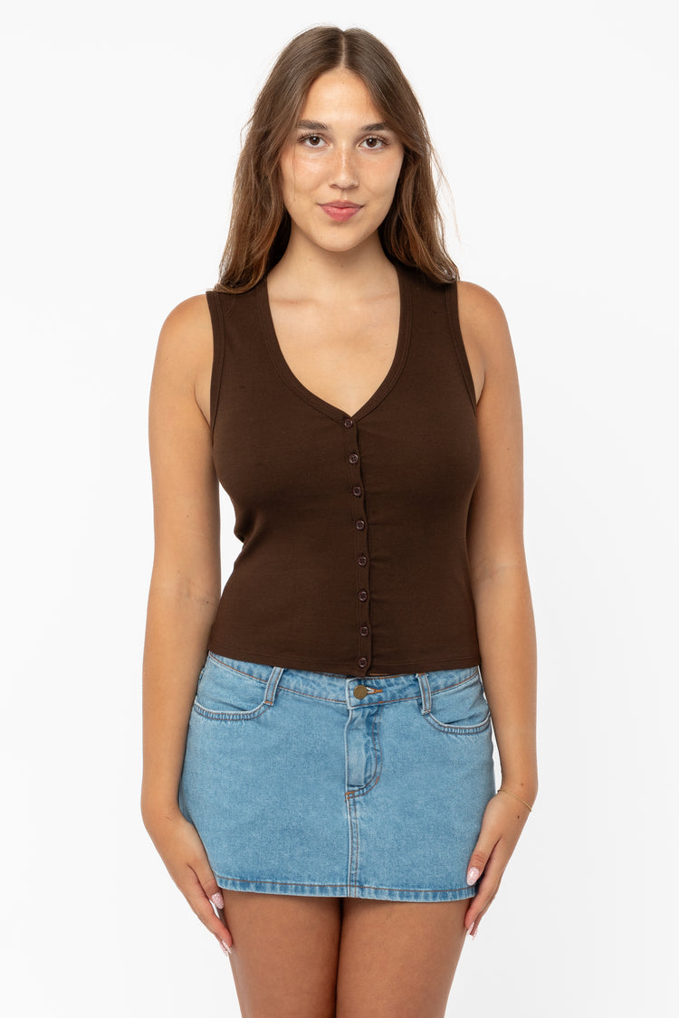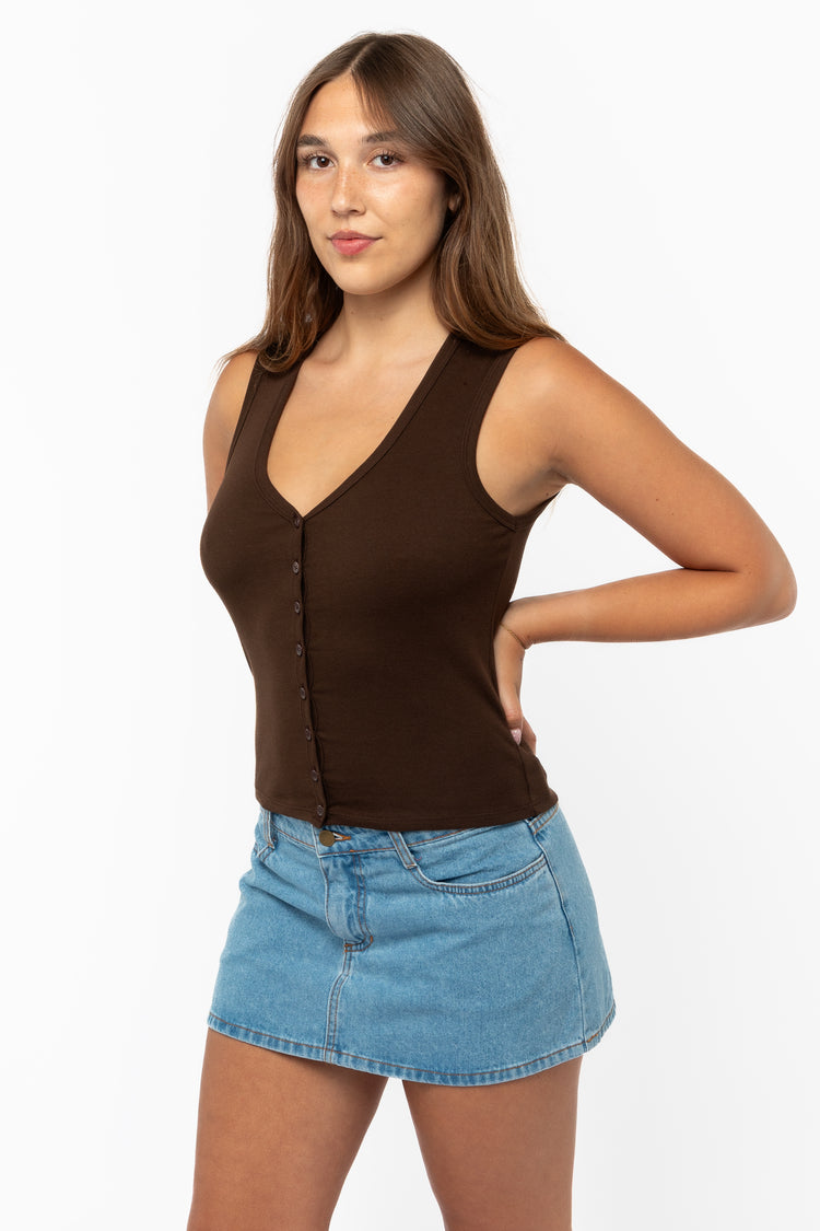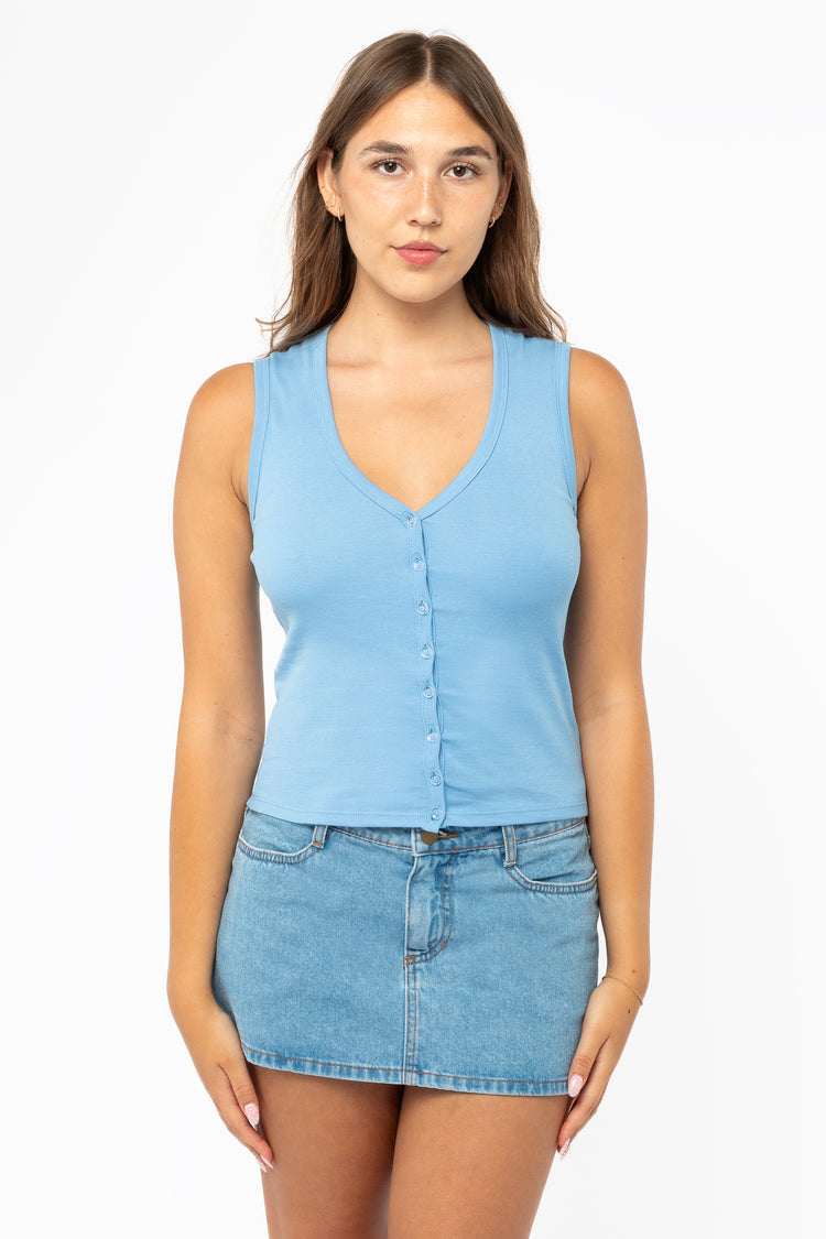 43575X – Baby Rib Sleeveless V Neck Button Up Top