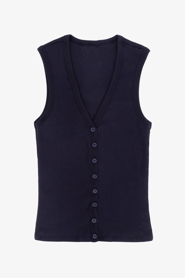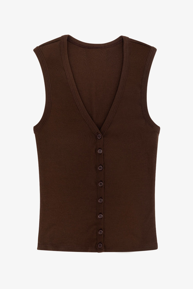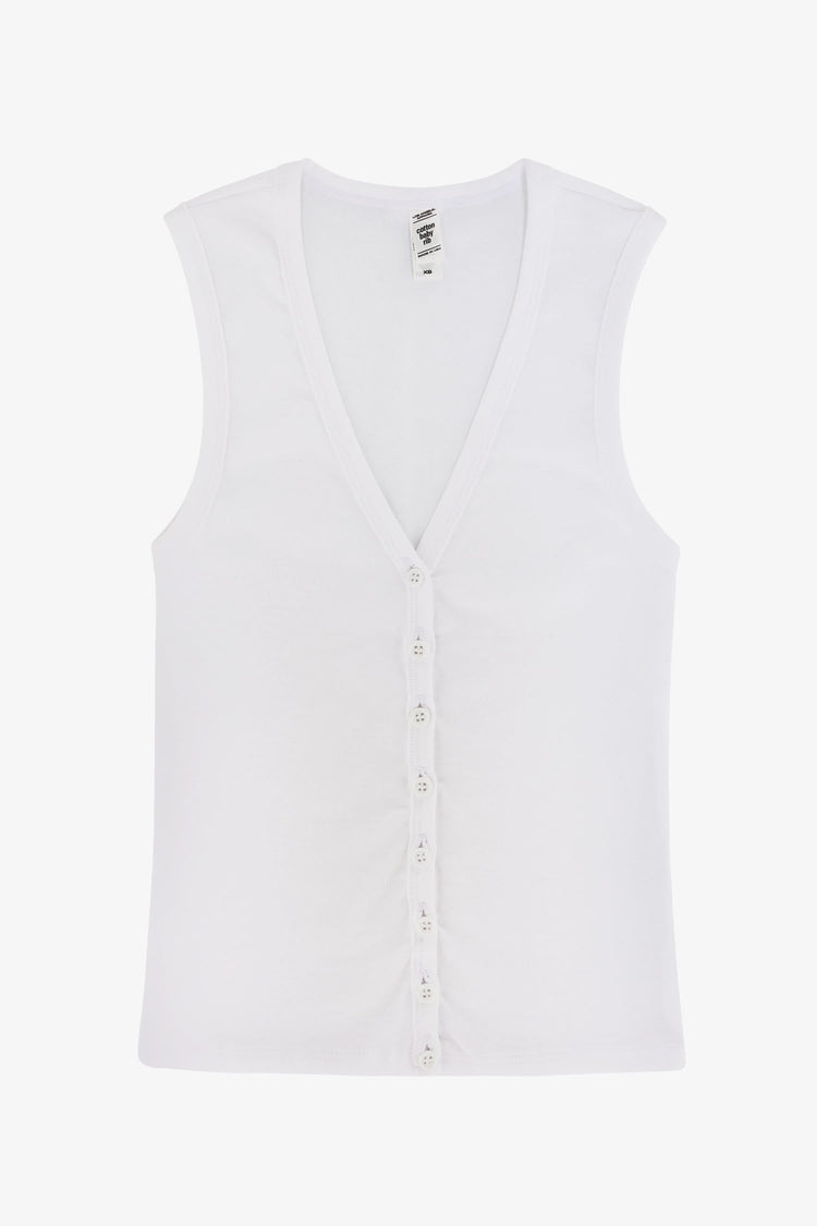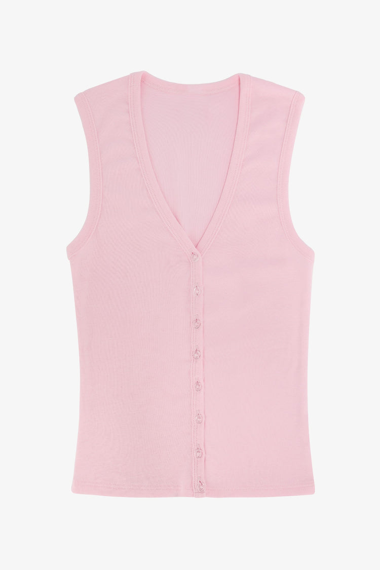 43575X – Baby Rib Sleeveless V Neck Button Up Top