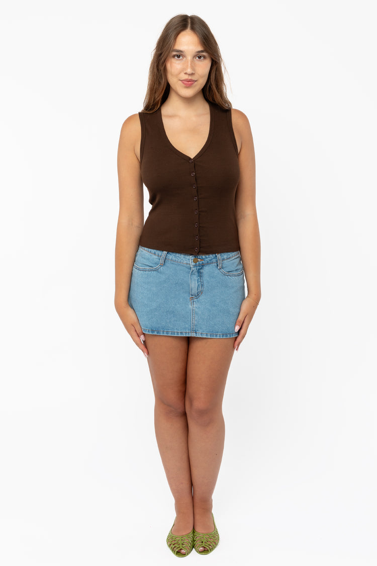 This cotton baby rib vest can be worn year round as a top or layering piece. Our combed cotton baby rib is made of soft 30 singles yarn and stretches up to 2 times its original size. This 100% cotton style shrinks 7% in the wash and this style has been designed to fit before and after wash. Made in Los Angeles, Calif.