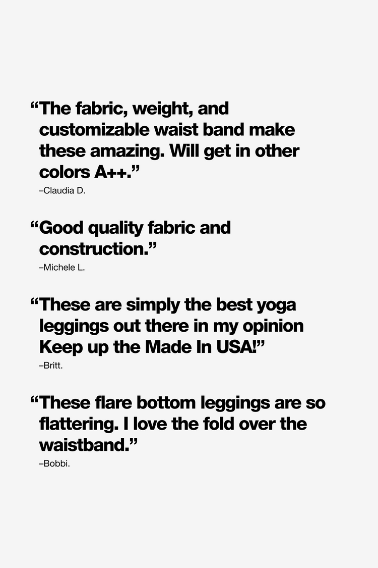 These Garment Dye Cotton Spandex Yoga Leggings are a universally flattering everyday staple and are made of a heavyweight cotton spandex with extra compression so you feel supported. Pair these versatile, flared leggings with any of our matching crop tops and dress them up or down. The folder waistband on this style al