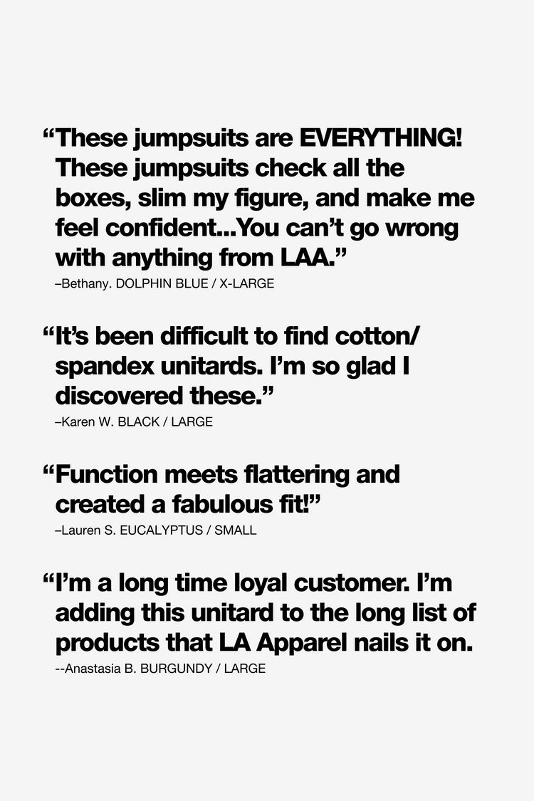 The essential tank unitard is made of our premium, heavyweight cotton spandex jersey for a figure-flattering and seamless wardrobe staple and has been garment dyed for a rich, smooth finish in essential colors. Whether you prefer this style for lounging at home, with socks and sneakers for an 80s-inspired outfit, or fo