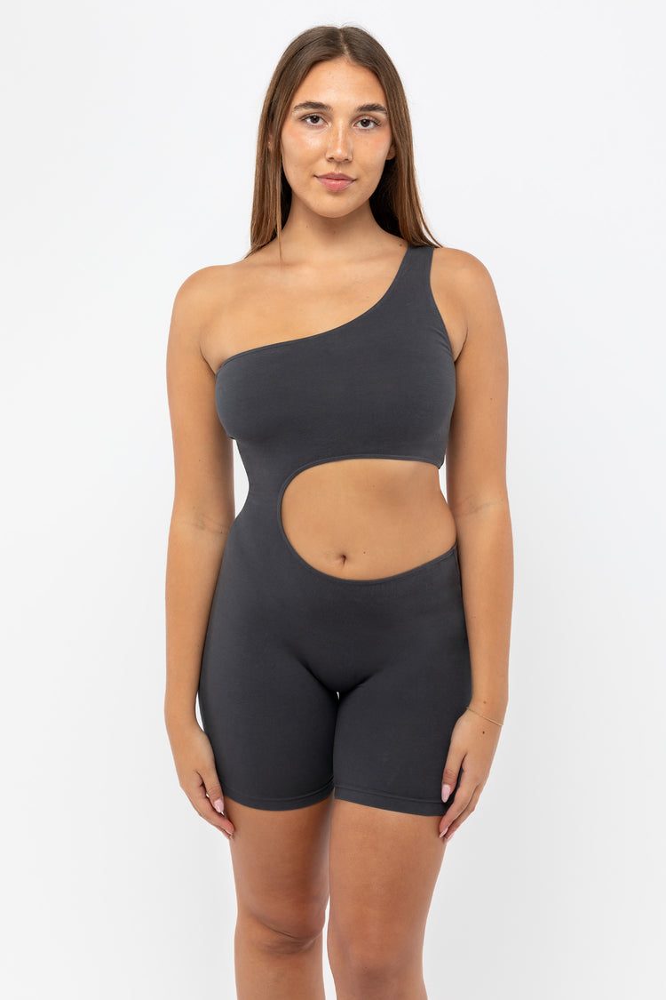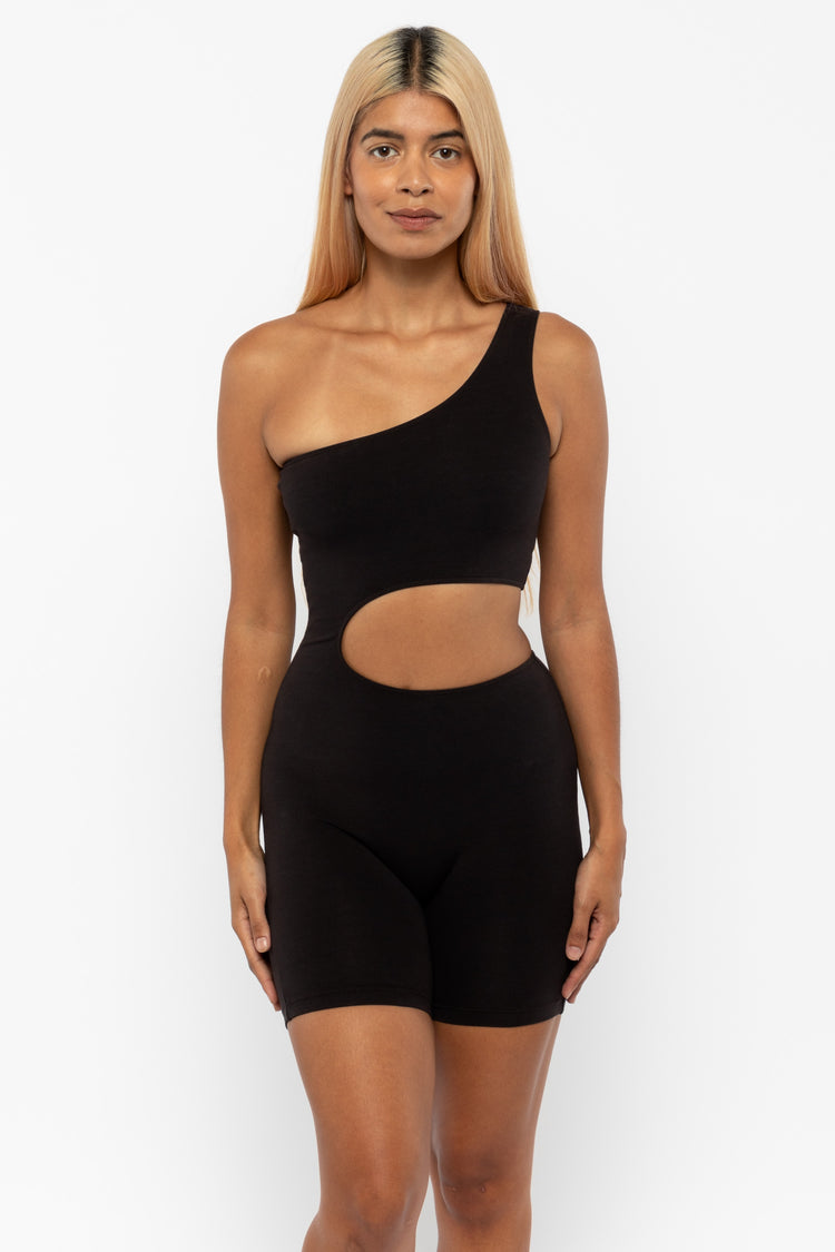 The Asymmetrical Biketard puts a surreal spin on the basic unitard. It looks different from every angle and is sure to keep the eye traveling.Wear this bodysuit on its own or with any of our skirts or pants for a seamless look. Fit Guide: Runs true to size. If you have a short torso, we recommend you size down. Our exp