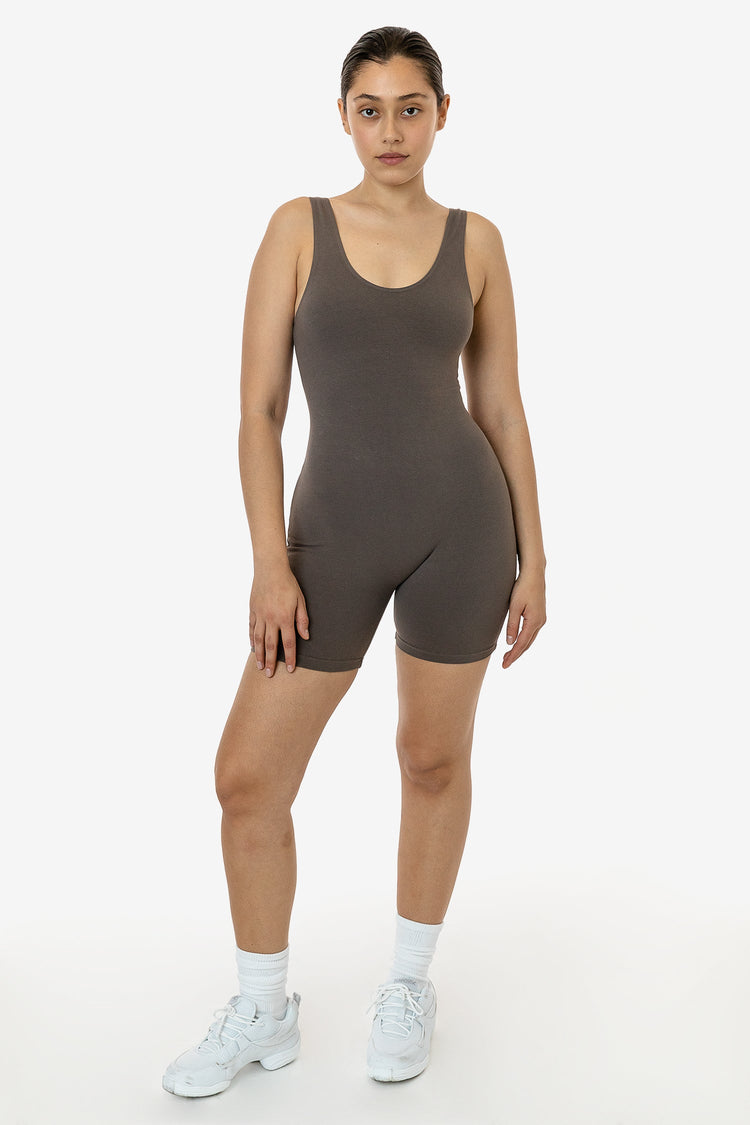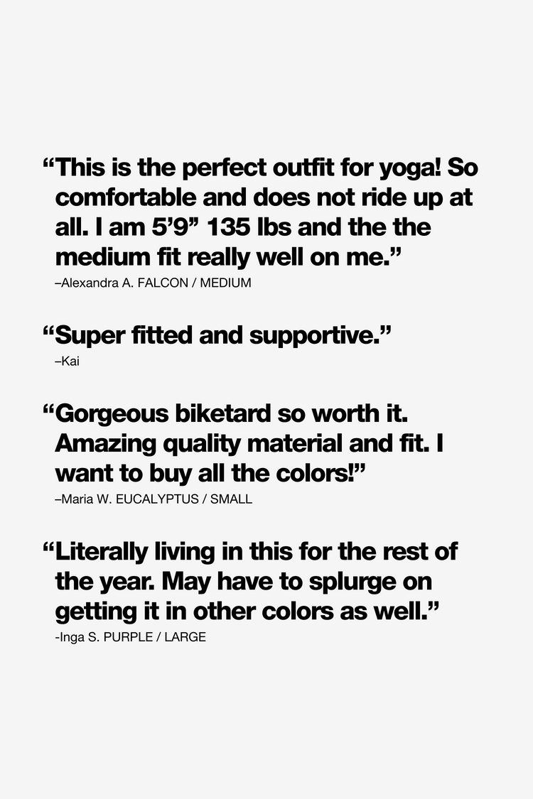 We've taken all of the best features from our different biketards to create the perfect basic that is equal parts feminine and sporty. This one-piece short unitard features a classic tank silhouette that provides just the right amount of coverage in the front, generous straps and arm holes. We've given this style a sco