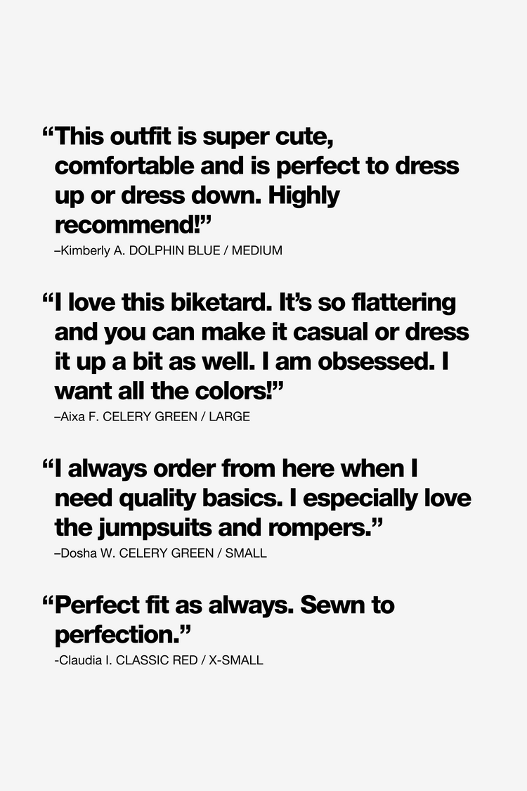 We’ve turned our B302GD Bra Tank Bodysuit into one-piece Biketard. This style features cups with darts and supportive straps without the underwire. We've given this biketard a mid-thigh length that stays put when you move without riding up and given it a more scooped back compared to our bodysuit version. Pair with our