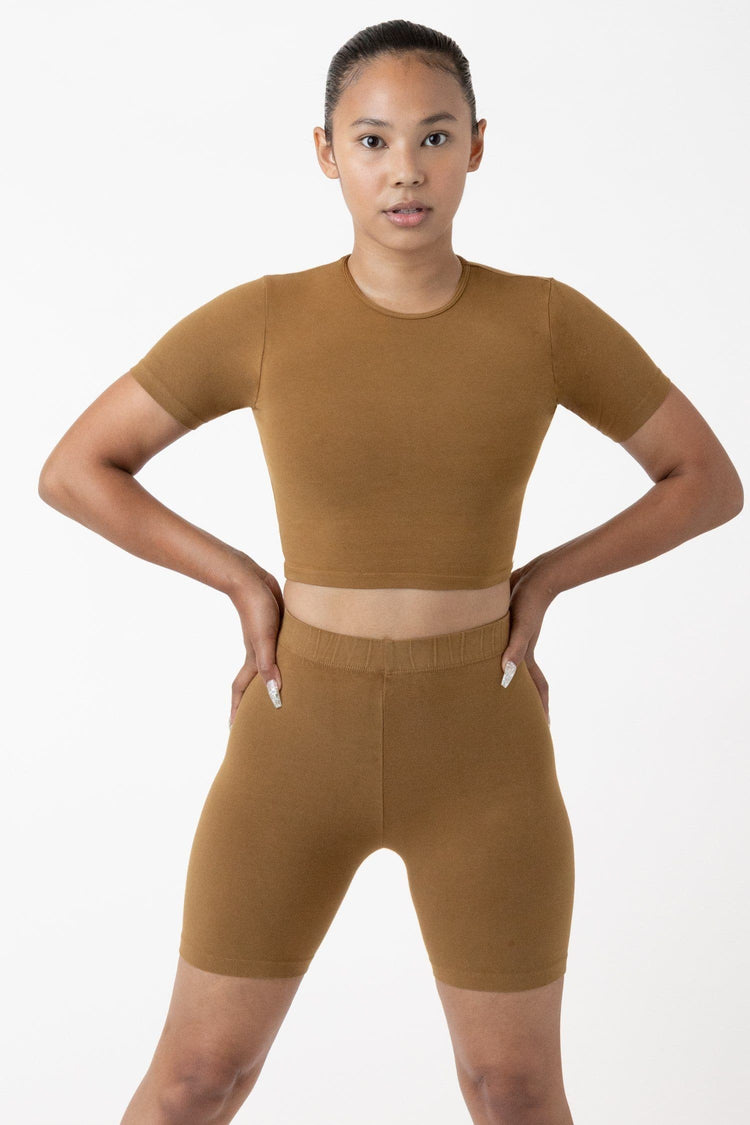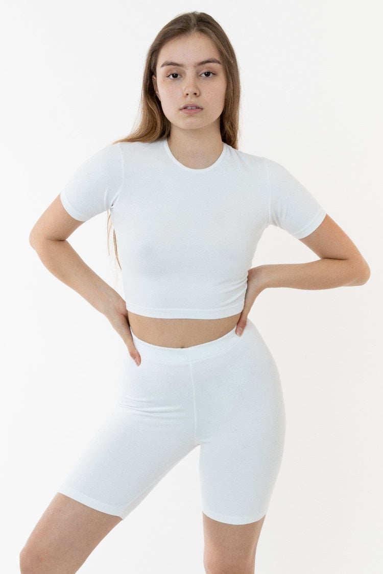 The Garment Dye Short Sleeve Crop Top is an essential styling piece with a high-crew neckline like a true baby tee. This is a comfortable and universally flattering style that hits mid-ribcage with comfortable sleeves that offer just the right amount of coverage. Pair with high waisted styles or low-rise sweats for a 9