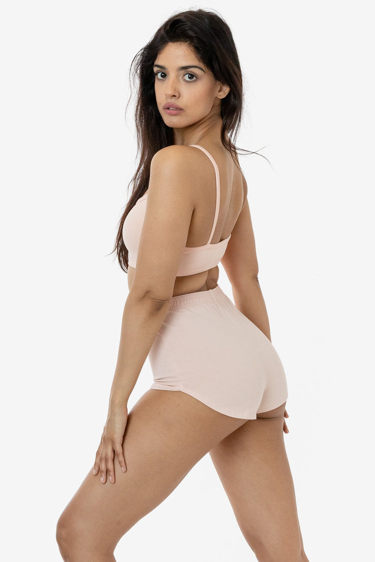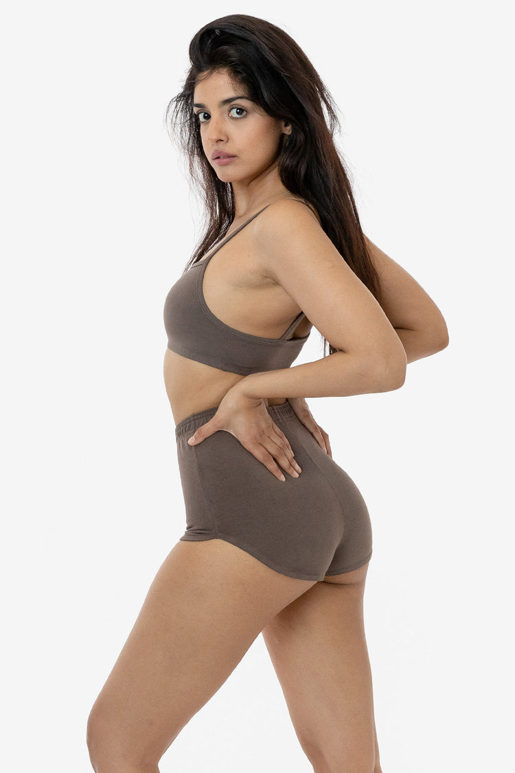 These cheeky hot shorts have a vintage, sporty-inspired look. Made of our heavyweight cotton spandex, these shorts feature a multi-needle elastic waist and curved dolphin hem and have been garment dyed for a rich, smooth finish. Pair with our matching 83016GD Spaghetti Bralette or any of our rib tanks for a timeless lo