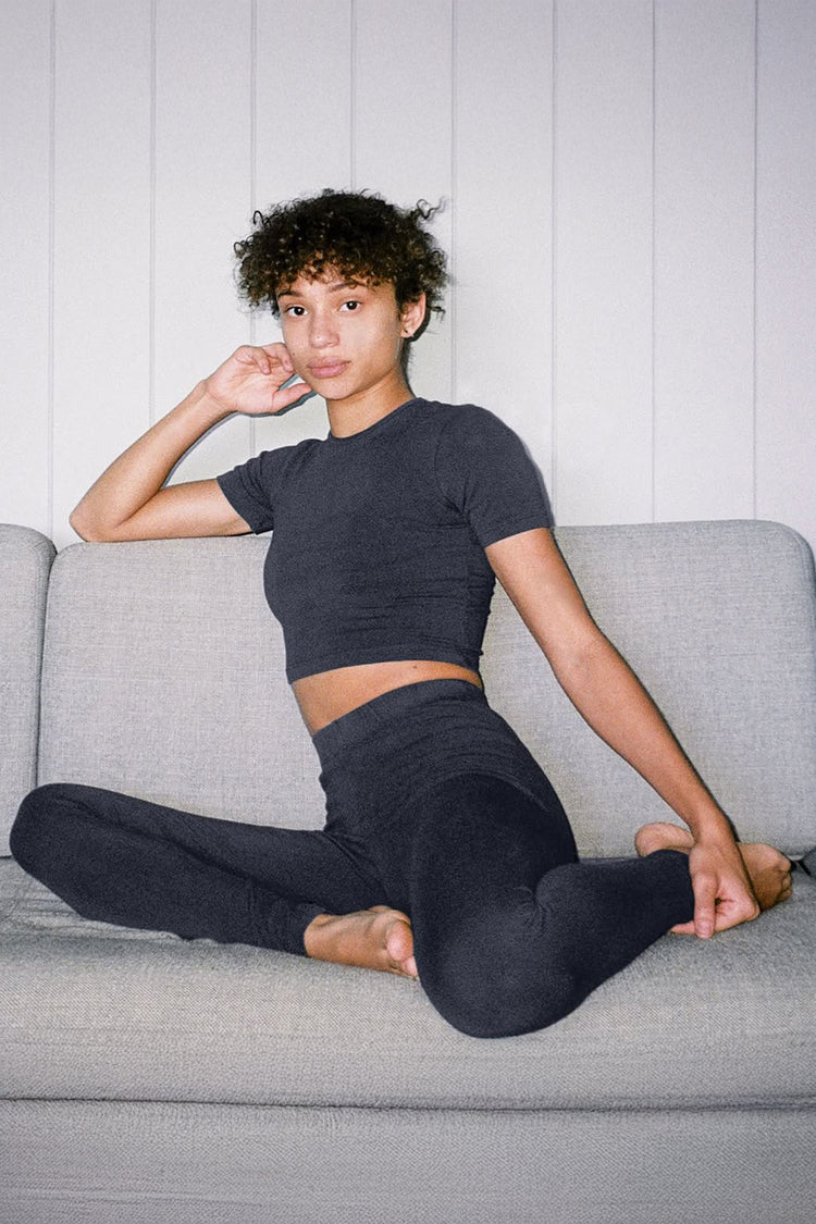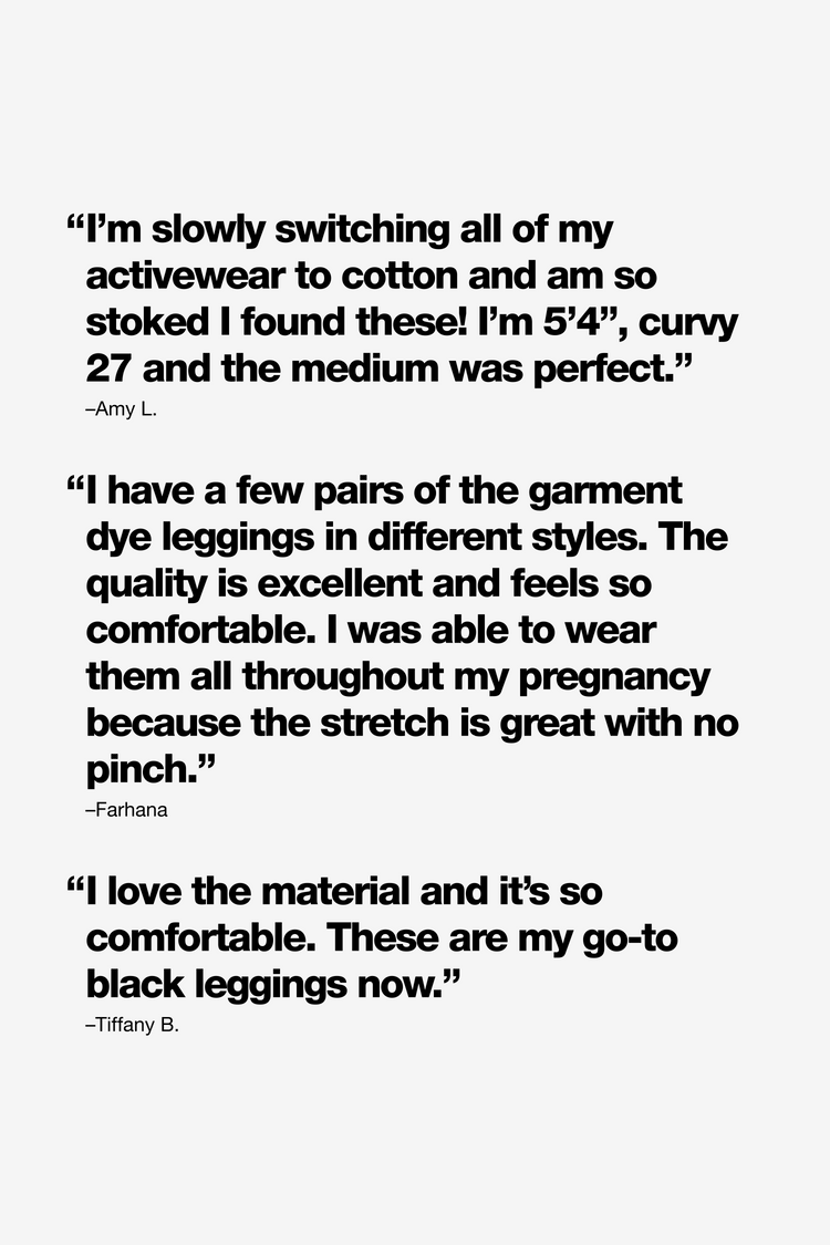 These Garment Dye Cotton Spandex Leggings are a universally flattering everyday staple. These are made of a heavyweight cotton spandex with extra compression so you feel supported whether you want to pair these with a matching crop top or an oversized sweatshirt. This style has been garment dyed for a rich, one-of-a-ki