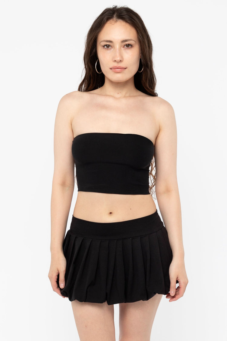 This pleated bubble skirt can be worn mid to low rise on the hips. The pleating provides just enough volume for flirty appeal. Our experienced sewers earn up to $25 an hour and no less than $17.87; additionally workers have healthcare benefits for less than $15 per week, a 401k plan, paid sick days, subsidized bus pass
