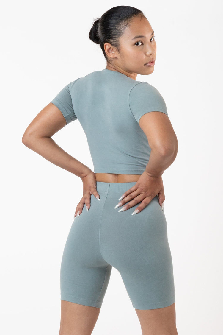 Our Garment Dye, Premium Cotton Spandex Bike Short is made of a heavyweight cotton spandex with extra compression and as been garment dyed and enzyme washed providing unique colorways and rich texture. This style is thicker and more opaque than our classic bike short with a smooth luxurious hand-feel. Featuring a mid-t