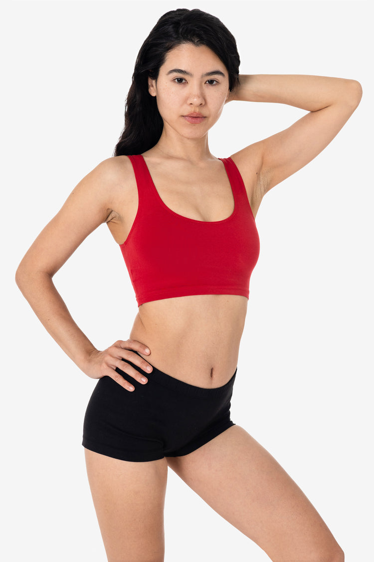 The Garment Dye Crop Tank is a wardrobe staple in between a bralette and a crop top. This style features a cropped length and looks great underneath an oversized jacket with any style of bottoms, from sweatpants in the daytime or a fitted pant at night. Try it with our matching 8330GD Short Shorts or 8382GD Bike Shorts